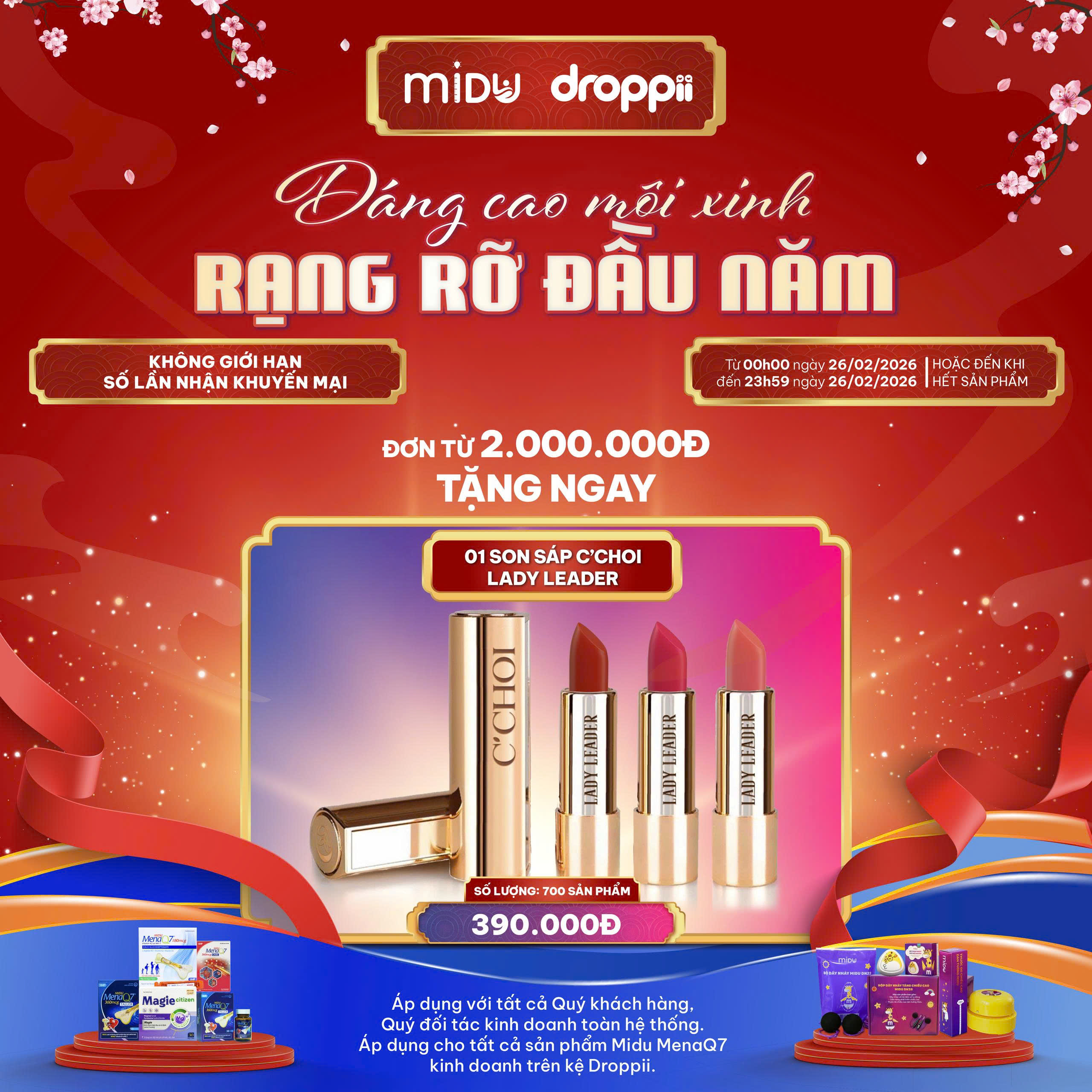 Ưu đãi “Dáng cao môi xinh - Rạng rỡ đầu năm” là cơ hội lý tưởng để bạn mua sắm sản phẩm Midu trên Droppii và nhận quà tặng giá trị. Theo dõi Midu để cập nhật thêm nhiều ưu đãi hấp dẫn trong thời gian tới!